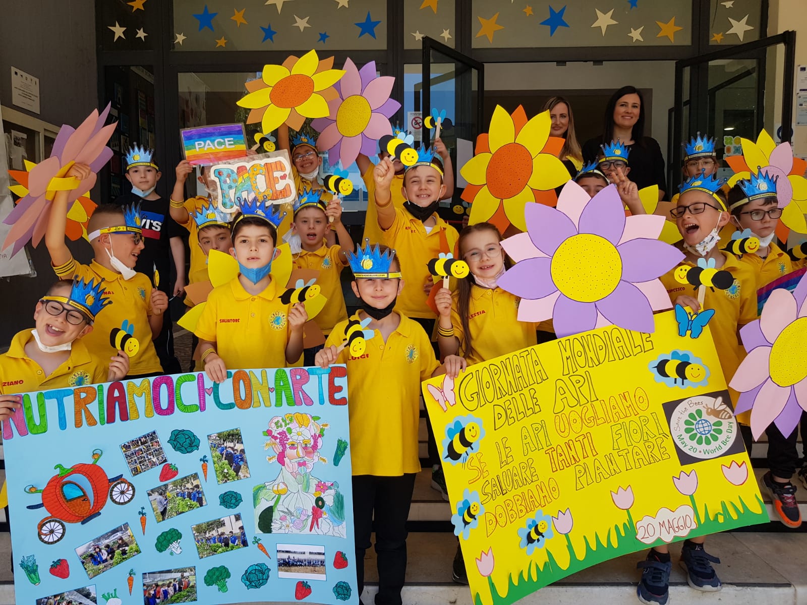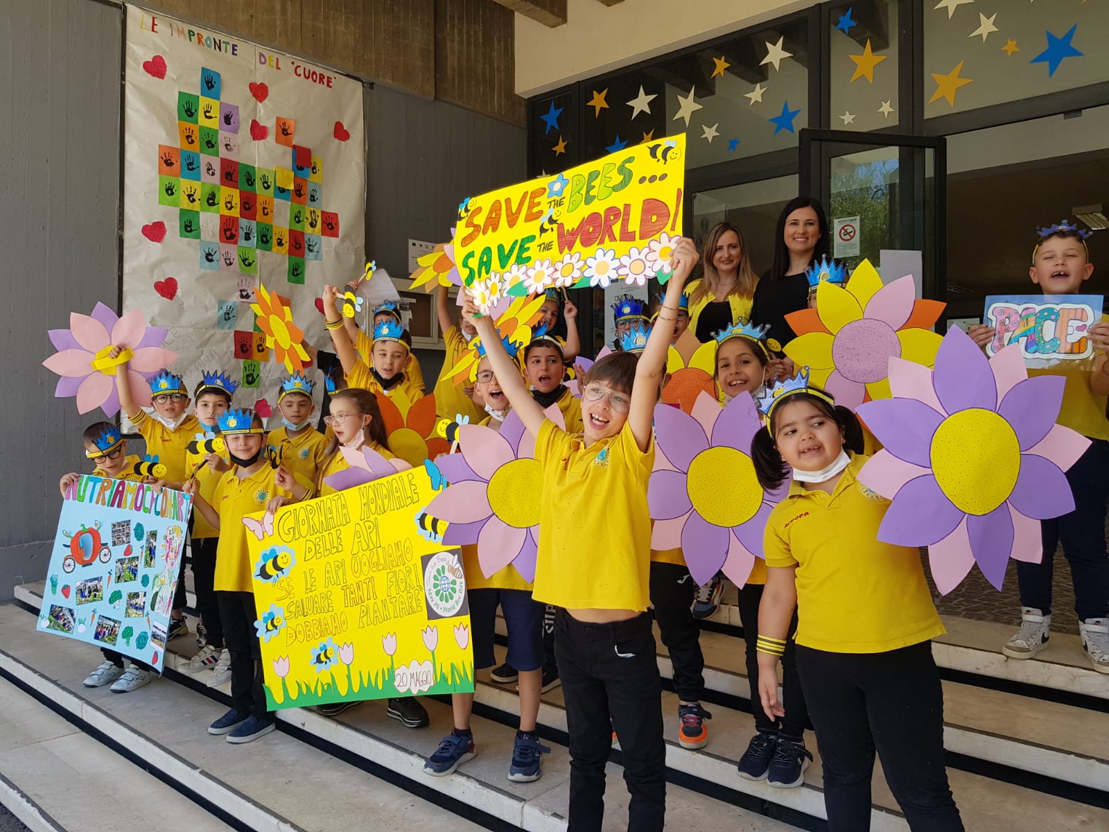Insieme ai bambini dell’infanzia e delle seconde della scuola primaria, tutti gli alunni hanno dimostrato con rappresentazioni coreografiche e disegni l’importanza delle api per la loro operosità e preziosità alla riproduzione delle piante e alla vita dell’intero ecosistema natura. In un primo momento i bambini hanno gettato delle bombe di semi nel giardino per far nascere le piantine necessarie alla vita delle api. In un secondo momento, nell’aula en plain air, gli alunni hanno potuto preparare e degustare i prodotti raccolti nell’orto insieme agli allievi dell’Ist. Alberghiero A. Vetrano.