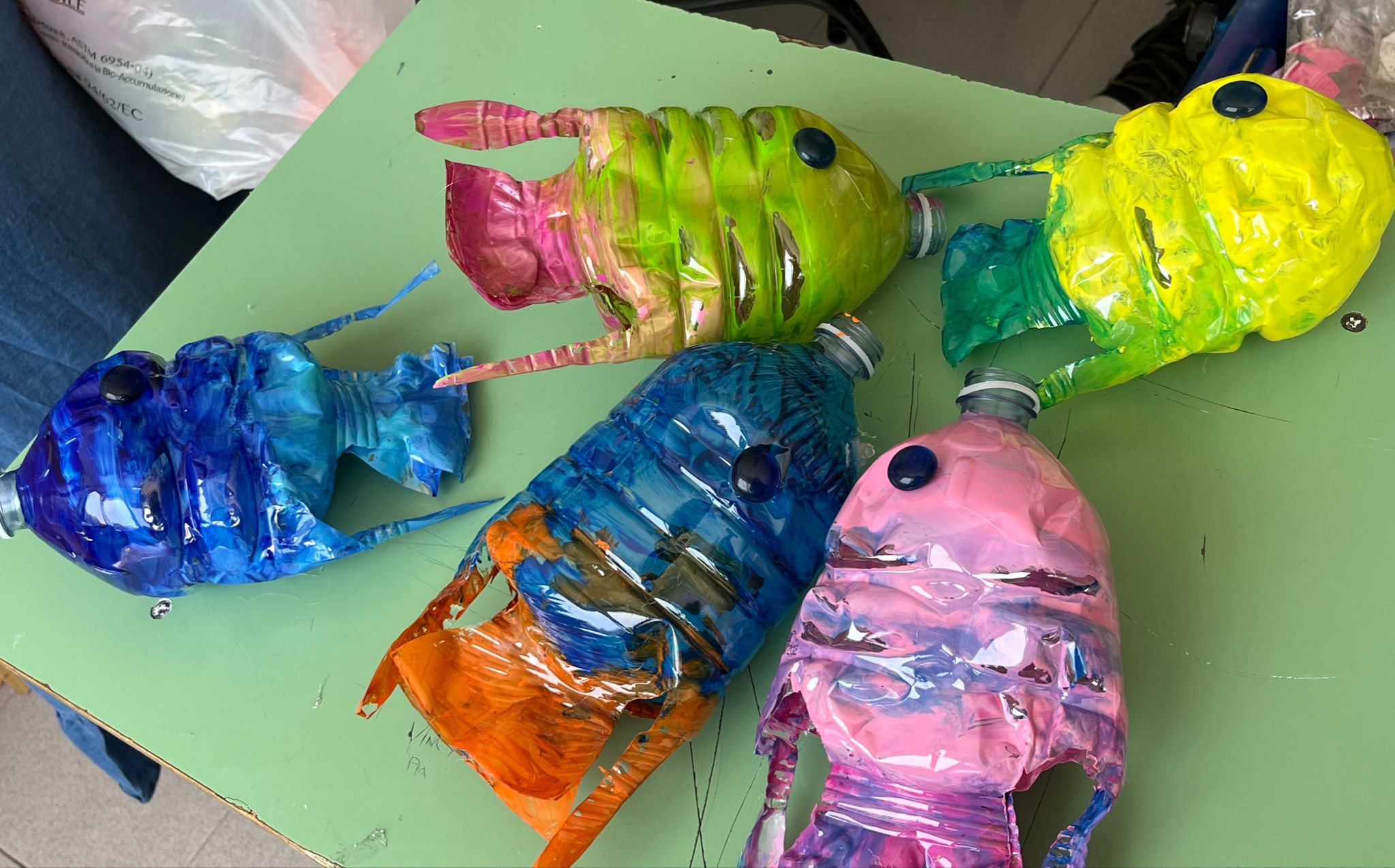 Dai materiali spiaggiati, raccolti durante l’attività di bonifica della spiaggia dello Stazzone , gli alunni delle classi prime e terze secondaria di 1° Grado, guidati dalle docenti di Arte e Immagine, hanno creato delle opere d’arte che sono state esposte nel Borgo dello Stazzone.