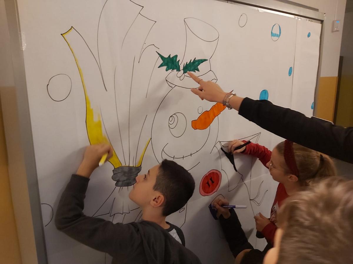 I laboratori sono stati animati dai nostri allievi che con competenza hanno illustrato, guidato e avviato  i ragazzi della primaria alle vari esperienze didattiche. A fine   percorso i giovani ospiti hanno decorato dei murales a tema natalizio.